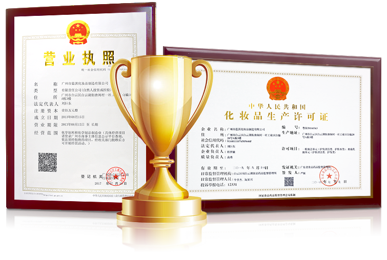 • 具有國家權(quán)威認證的化妝品生產(chǎn)資質(zhì)